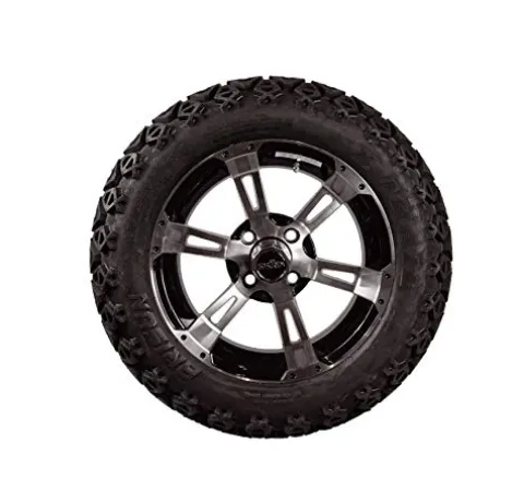 - Includes (4) wheels, (4) tires, (4) center caps and (16) metric lug nuts . Tire size: 23×10-14 . Tires come mounted on 14. Colossus wheels w/ center caps (might have to remove hub dust covers to allow room for center caps) . Set includes (16) standard lug nuts compatible with EZGO golf carts