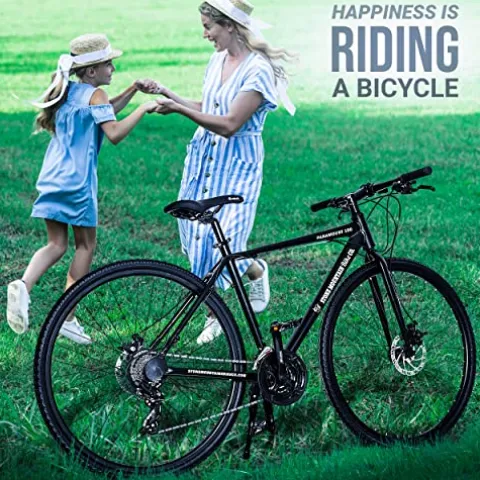 - Advanced Forks and Reliable Alloy Brake Levers: The hybrid bike features cutting-edge suspension forks designed to absorb shocks and vibrations from rough terrains, providing a smoother and more comfortable ride. Also, equipped with alloy brake levers, this adult road bike ensures dependable stopping power in various conditions.