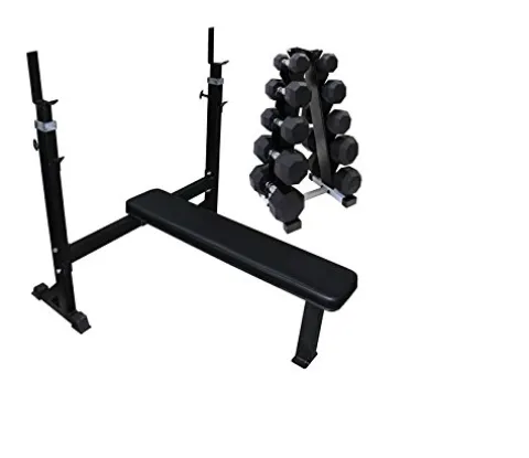 - Squat rack with flat bench. Multi- function for muscle-building free-weight workout