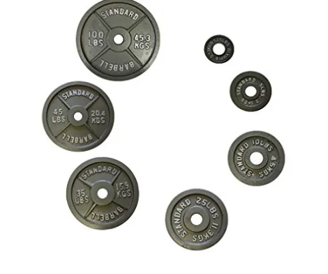 Enhance your weightlifting routine with the Ader Olympic 2” Gray Plates (455). Crafted by Ader, these cast iron plates in a sleek gray color are designed to accommodate 2” Olympic bars. The set includes a variety of weights, with (2) of 2.5, 25, and 35lb plates, (4) 5 and 10lb plates, and (6) 45lb plates. Perfect for beginners and seasoned lifters alike, these durable plates are a must-have addition to your home gym setup.