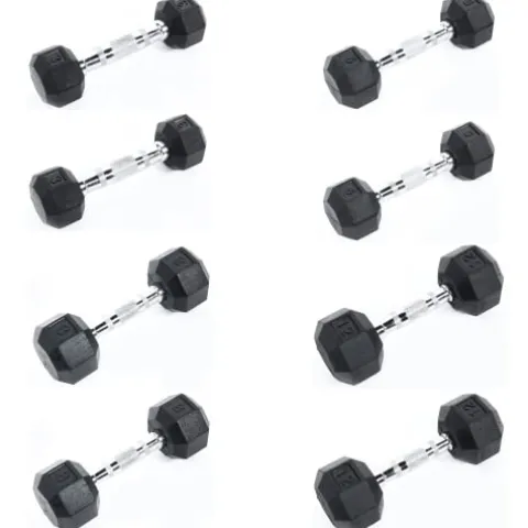 - Premium quality dumbbells have contoured chrome handles and rubber-coated heads