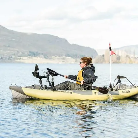 The Advanced Elements Straitedge Angler Pro Inflatable Kayak in Khaki is a top choice for fishing enthusiasts looking for a high-performance kayak. With a hull design featuring built-in aluminum ribs and a drop-stitch floor construction, this kayak offers exceptional tracking and stability on the water. Its unique Accessory Frame System allows for customization with rod holders, a fish finder, and other equipment. For increased propulsion, simply add a Bixpy Motor to the fin box. The adjustable AirFrame PRO seat ensures all-day comfort, while abrasion pads in key areas enhance durability. Perfect for anglers seeking a versatile, comfortable, and durable fishing kayak.
