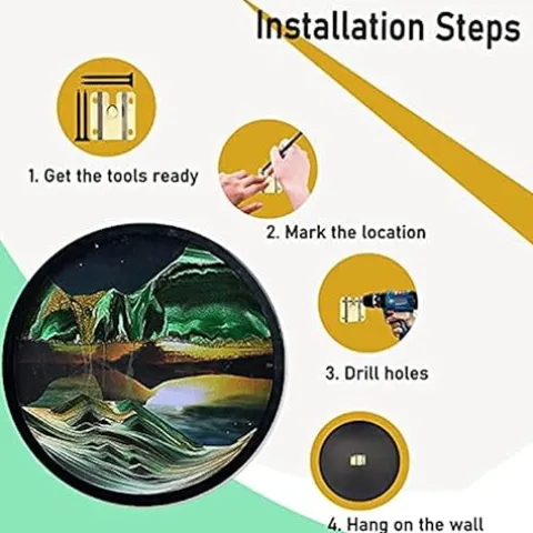 - 【Easy to Install】The hook is designed on the back of the product, You just need to punch holes in the wall, fix the Moving Sand Art Bracket Brace and hang the product directly, It is strong, simple, Not easy to rust.