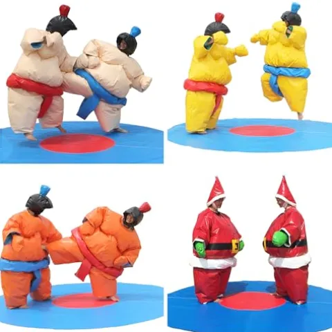 Elevate your entertainment experience with the Air-Ads Supplies Wrestling Sumo Suit Set, designed for dynamic fun and safe competition. This set includes two vibrant orange suits, crafted from eco-friendly PVC, ensuring durability and strength for repeated use. Certified by SGS, EN71, CE, and UL, these suits guarantee safety and quality. Each package contains two suits, two helmets, two gloves, and a floor mat, providing everything you need for an engaging activity. Ideal for company events or parties, these padded wrestler outfits transform any gathering into a thrilling spectacle. Please ensure to provide a contact number with your order for seamless delivery and contact us for a material sample if needed.