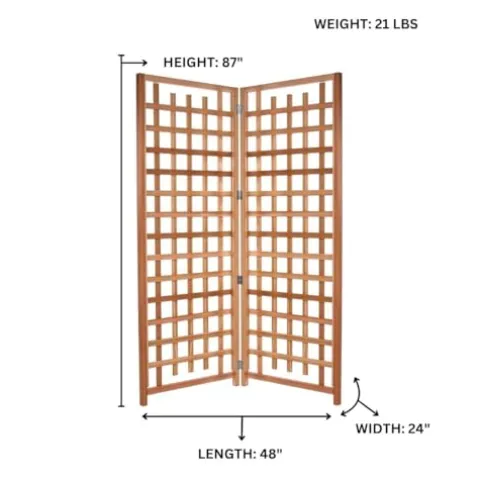 - Quality Craftsmanship: Each piece is lovingly handcrafted with precise, snug-fitting parts and a smooth sanded finish. This dedication ensures not only effortless assembly but also a polished look that complements the tranquility of your outdoor haven. Trellis dimensions: 66w x 11d x 84h. Planter dimensions: 33w x 11d x 12h.