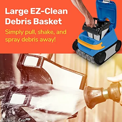 - WHAT’S INCLUDED: The Evo 502 Robotic Pool Cleaner comes equipped with a 50ft cable and a large EZ Clean debris basket