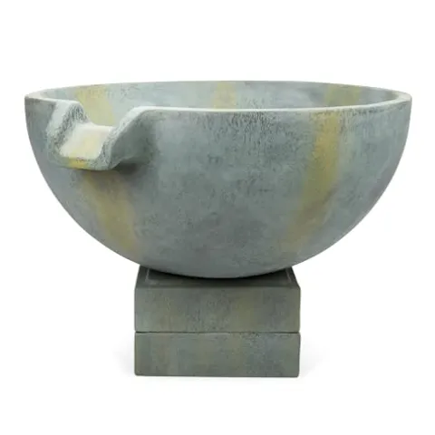 - Fountain bowl and basin are made from durable glass fiber reinforced concrete (gfrc) with a unique and beautiful Patina finish