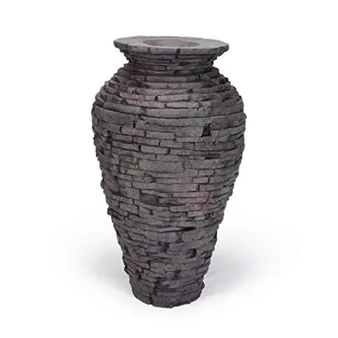 The Aquascape Stacked Slate Urn Fountain Kit enhances any environment with its elegant design and soothing sound of flowing water. Standing 32 inches tall and crafted from a lightweight, durable fiberglass-resin composite, this fountain mimics the natural beauty of real stone without the risk of fading or chipping. The complete kit includes an efficient statuary pump and a robust AquaBasin, ensuring easy setup and maintenance. Ideal for both indoor and outdoor use, this stunning gray urn adds a tranquil atmosphere to your home or garden, making it a perfect centerpiece for relaxation and enjoyment.