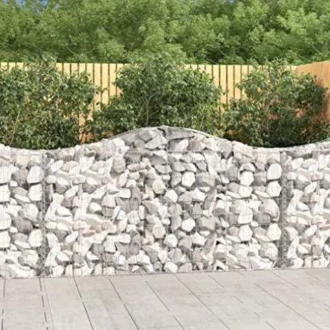 - Durable material: Made of galvanized iron for stability and durability, and with a sturdy gabion wire diameter of 0.14″, these gabion walls will adorn your garden season after season. Stable construction: These arched gabion cages are designed to be filled with rocks or gravel for stable construction.