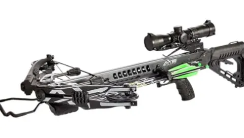 The Carbon Express Axe 400 Crossbow combines precision engineering and advanced features to elevate your shooting experience. Designed by Axe Crossbows, this sleek black crossbow delivers adjustable FPS for customizable performance, ensuring you hit your target every time. Its illuminated red and green reticle enhances visibility in various lighting conditions, while the fog and waterproof construction guarantees reliability in diverse weather. Built to withstand the rigors of the hunt, the Axe 400 is shock and recoil proof, providing stability and accuracy. With easy windage and elevation adjustments, this crossbow empowers you to take aim with confidence and precision. Complete with a scope, quiver, and PileDriver crossbolts, the Axe 400 is an essential tool for any serious archer.