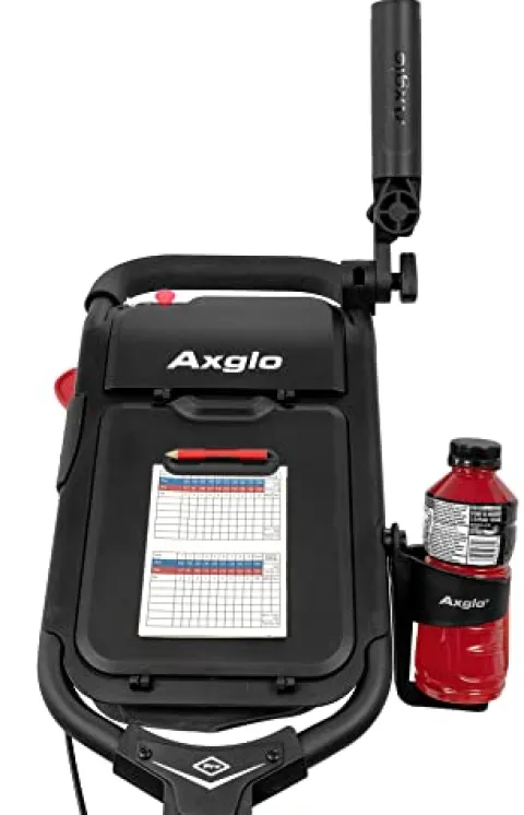 The Axglo Flip n’ Go Pro Golf Push Cart in White/Grey is the ideal companion for your golfing adventures. This innovative cart boasts a patented 1-step folding design, allowing for quick and easy setup in just seconds. Its space-saving features include a quick-taking-off function on the rear wheels, perfect for compact storage. With two separate large storage consoles, this cart keeps your accessories organized and easily accessible. Additionally, it comes equipped with an umbrella holder and cup holder for added convenience on the course. For a lightweight, easy-to-use golf push cart that enhances your game, choose the Axglo Flip n’ Go Pro.