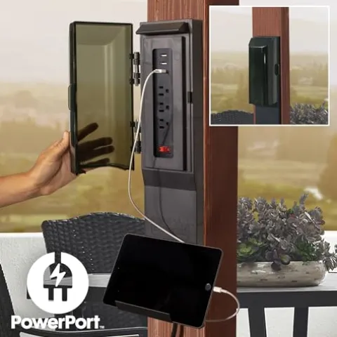 - Powered Up: Patented PowerPort features 3 electrical outlets and 3 USB ports to power your outdoor living space, mounting easily to any post on the structure (power source not included)