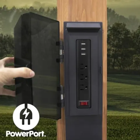 - Powered Up: Patented PowerPort features 3 electrical outlets and 3 USB ports to power your outdoor living space, mounting easily to any post on the structure (power source not included)
