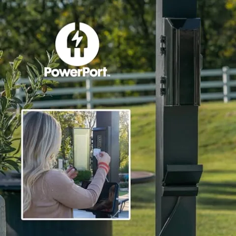 - Powered Up: Patented PowerPort features 3 electrical outlets and 3 USB ports to power your outdoor living space, mounting easily to any post on the structure (power source not included)