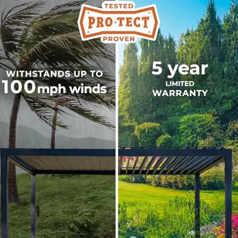 - All-Weather Durability: Pro-Tect tested and proven to withstand up to 3,830 pounds or 12 inches of snow load, and winds up to 100 mph (Product must be anchored as specified in Backyard Discovery instruction manual)