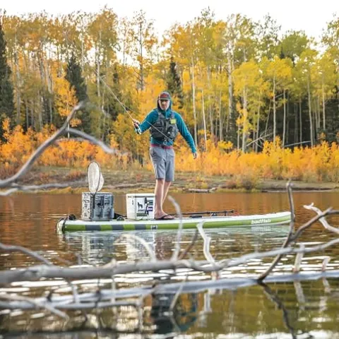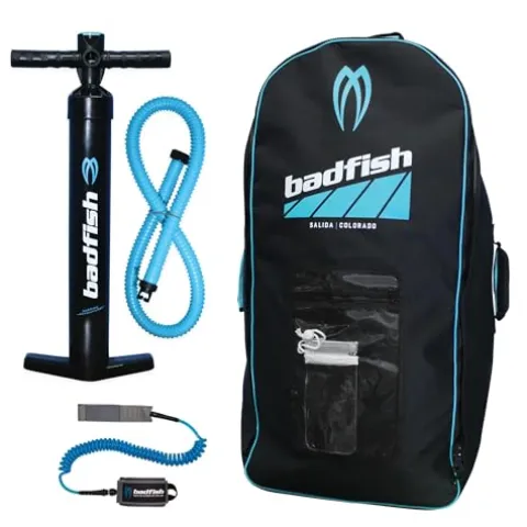 The Badfish Badfisher Inflatable Stand Up Paddle Board is the ultimate choice for fishing enthusiasts. This SUP by Badfish features a durable and unbreakable tri-fin design, measuring 11’ 6” x 36” x 6” and weighing only 33lbs, making it easy to transport and maneuver. The board is equipped with Scotty accessory compatibility and multi-point tie-down anchors, providing convenience and versatility for your fishing gear. Its white and green color scheme adds a touch of style to your fishing adventures, while the included paddle, backpack travel bag, pump, fixed fins, and coiled leash ensure you have everything you need for a successful day on the water.