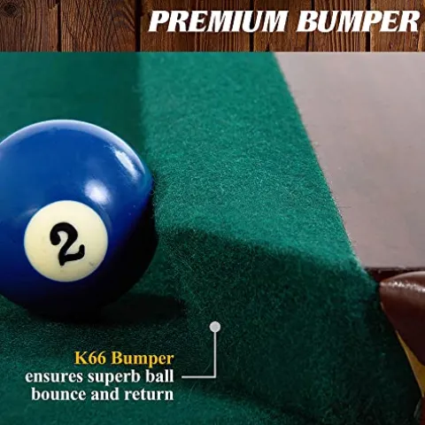 - PLAYING SURFACE & BALL ROLL: The 88″ x 44″ playfield of this parlor-style leather drop pocket with synthetic leather flap table is covered in a 50% wool felt blend cloth with rubber K66 bumpers for a smooth ball roll of the included 2.25” pool ball set