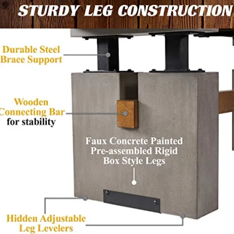 - CRAFTSMANSHIP: The table legs are made of MDF and steel supports with faux concrete finish and Urban Collection design, the crossbar is made of MDF with painted wood veneer and the table apron is made of plywood with painted wood veneer and joined corners