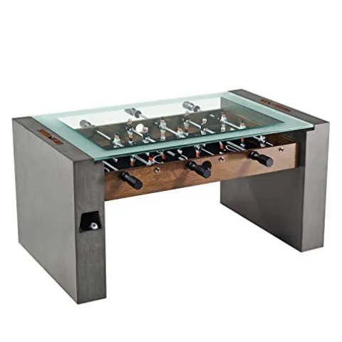 - URBAN STYLE COFFEE TABLE: Elevate your home game room with a stylish 40” foosball table that doubles as a coffee table. The table boasts a 30”x20” playfield and a transparent tempered glass top that effortlessly converts into a functional coffee table.