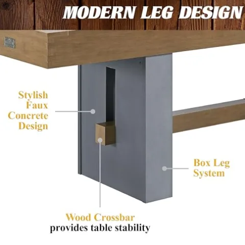 - CRAFTSMANSHIP: The preassembled table crossbar is made of MDF, and the table legs have a faux concrete finish in the Urban collection design and are made of MDF, the table apron is made of MDF and has a durable PVC laminated wood grain finish.