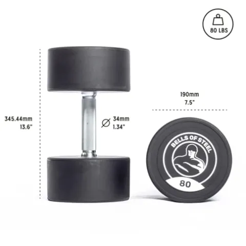 - Say No to Mismatch Pecs! – Bells of Steel Urethane Dumbbells have a 2% tolerance from the listed weight, which is exactly what should be expected for commercial-grade quality. So, say goodbye to low-quality dumbbells giving you mismatched gainz!