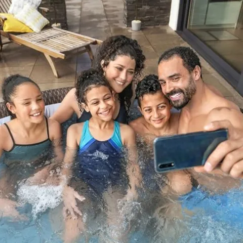 - Airjet Hot Tub: Round St. Moritz hot tub provides a soothing massage experience with 180 bubbling warm jets for up to 5 to 7 people and reaches up to 104 degrees Fahrenheit for ultimate relaxation