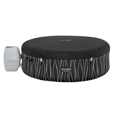 Enjoy the ultimate relaxation experience with the Bestway SaluSpa Hollywood EnergySense Luxe AirJet Round Inflatable Hot Tub. This spa features 140 bubbling warm jets that provide a soothing massage for up to 6 adults, with the ability to heat water up to 104 degrees Fahrenheit. The Energysense cover is 40% more efficient in retaining heat, making it perfect for colder climates. Constructed with DuraPlus 3-layer material that is highly puncture-resistant, this hot tub also includes a Freeze Shield automatic heating function for added convenience. Equipped with a pump that handles inflation, heating, filtration, and massage system control, the package includes 2 covers, a pump, a filter cartridge, a ChemConnect dispenser, an LED light strip, pillows, and a repair patch. With a water capacity of 240 gallons and energy efficiency compliant with various state regulations, this hot tub is the epitome of luxury and functionality.
