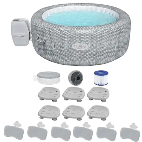 - Backyard Bliss: After a long day, there’s nothing more relaxing than sinking into warm, bubbling water right in your backyard with this Bestway SaluSpa Honolulu AirJet Inflatable Hot Tub with a 6-pack Non-Slip Pool and Spa Seat, and a 6-pack of headrest pillow