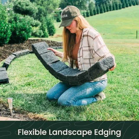 The Beuta Landscaping Lawn Garden Edging Border is designed for effortless installation and long-lasting durability, making it the perfect solution for organizing mulch and enhancing the beauty of your outdoor spaces. Crafted from flexible composite resin in a stunning sandstone color, this interlocking landscape edge features a patent-pending connection system that simplifies setup—just hammer in the included spikes for a secure fit. Made in the USA, this product maintains its integrity throughout the seasons, providing a reliable border for flower beds, tree rings, playgrounds, and walkways. With the ability to create various shapes using five distinct block types, you can customize your landscape effortlessly. Transform your garden into an organized and visually appealing retreat with this easy-to-use edging solution.