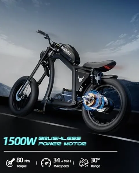 Experience the ultimate freedom of travel with the BIGNIU BG-X Electric Bike for Adults. Equipped with a powerful 1500W brushless motor and a long-lasting 48V/31.5Ah battery, this electric bike offers an impressive range exceeding 40 miles on a single charge, reaching speeds of over 34 mph. Featuring dual shock absorption for a smooth ride, advanced safety features such as turn signals and hydraulic disc brakes, and easy assembly with dedicated customer support, the BIGNIU BG-X prioritizes your safety and comfort on every journey.