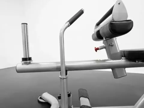 The Elite Series- CF2172- Calf Raise by BK BodyKore combines superior durability with ergonomic design, making it an essential for any fitness enthusiast. Crafted with an 11-gauge steel frame and 2″x4″ oval tubing, this machine ensures stability and long-lasting performance. The sleek silver and black frame is not only visually appealing but also practical, featuring a 4-position adjustable knee support and super comfortable 2″ thick pads. Experience seamless operation with the easy engage/disengage lever and grip bar, while the wide, textured, non-slip foot bar ensures safety during intense workouts. Complete with a chrome-plated, Olympic-diameter weight peg, this calf raise machine promises both functionality and style for your fitness space.