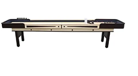 Experience the authentic pub-style fun with the Bluewave Hathaway Merlot 9′ Shuffleboard Table in Espresso Natural. Crafted with a timeless blend of light and dark finishes, this shuffleboard table is a perfect addition to any game room. The leveled playing surface, climate adjusters, and reinforced legs ensure a perfect game every time. The ultra-durable 1.75-in solid birch wood playfield is coated in 10 layers of scratch-resistant lacquer for smooth and precise gameplay. With dimensions of 108.5″ L x 24″ W x 31″ H, this table guarantees endless entertainment for friends and family. Plus, it comes with a 180-day manufacturer warranty for added peace of mind.