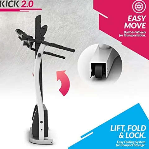 Enhance your home workout routine with the Bluefin Fitness KICK 2.0 Innovative High-Speed Folding Treadmill. This treadmill from Bluefin Fitness is designed with cutting-edge features to elevate your fitness experience. Compatible with the Kinomap fitness app, you can access a wide range of training videos, coaching classes, and structured workouts. The treadmill offers joint protection with its shock absorption system, providing a smooth and low-impact running surface. With a quiet and energy-efficient motor, speeds up to 12 Km/h, and an 18% manual incline, this treadmill is perfect for professional training. The digital screen displays essential workout metrics, while the integrated hand sensors and wireless heart rate strap compatibility allow for heart rate monitoring. Complete with Bluetooth speakers and a safety key, the Bluefin Fitness KICK 2.0 Treadmill is the ultimate home workout companion.
