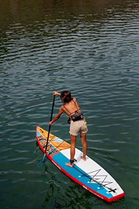 - Package includes: inflatable paddle board, lightweight adjustable carbon fiber 3-piece travel Paddle with matching graphics, backpack roller Carry Bag, high pressure pump and gauge, FCS II quick connect single fin, leash and repair kit