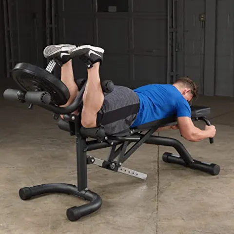 - EXERCISES: This bench has versatile design that allows for a variety of exercises such as Decline, Incline, Flat and Military Press, as well as Leg Extensions and Leg Curl. It can accommodate Olympic size plates with the leg extension/leg curl having a capacity of up to 150 lbs. Perfect for all types of barbell and dumbbell exercises, this bench works great in Power Racks, Smith Machines and the strongest leverage gym system in existence.