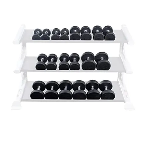 - EASY WEIGHT IDENTIFICATION: These round rubber dumbbells come with easy-to-read weight designations embossed on each piece, allowing for effortless selection of weights for your workout routine. The set Includes 10 Dumbbells. (2 each): 80, 85, 90, 95, 100 lb. (900 lbs. total).