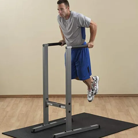 The Body-Solid Dip Station in Grey/Black is a versatile piece of equipment designed to target and strengthen the shoulders, delts, and triceps. Made by Body-Solid, known for quality fitness gear, this freestanding dip station features angled heavy-gauge steel uprights for stability. The oversized bars with slip-proof rubber grips ensure a secure and comfortable workout experience. With dimensions of 38 by 27 by 53 inches and a weight of 44 pounds, this dip station is sturdy yet compact. The adjustable distance between dip handles adds customization to your workout. Backed by a limited lifetime manufacturer’s warranty, this dip station is a durable and effective addition to any home gym.