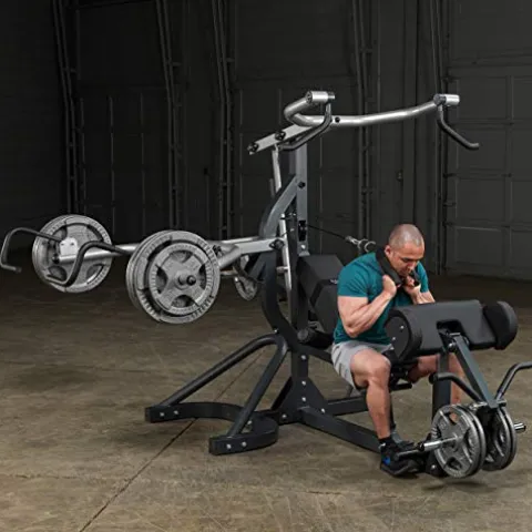 - NO SPOTTER NEEDED: The new Body-Solid Free Weight Leverage Gym allows you to work out without compromise. Feel free to max out and train to muscular exhaustion for accelerated gains. The Legerage Gym’s versatility and advanced safety features ensure a complete heavy-duty workout without the need for a spotter.