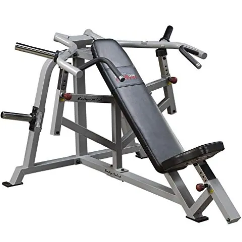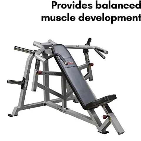 Enhance your upper body building routine with the Body-Solid Leverage Incline Press. This sleek black incline press features a unique converging press arm movement with advanced biomechanics, promoting effective muscle engagement. Its independent, unilateral arm action ensures balanced muscle development, while the adjustable press arms cater to users of all sizes. Compact at 71 by 53 by 41 inches, and weighing 167 pounds, this machine is perfect for home gyms. Plus, it comes with a limited lifetime manufacturer’s warranty, offering peace of mind as you sculpt and strengthen your physique.