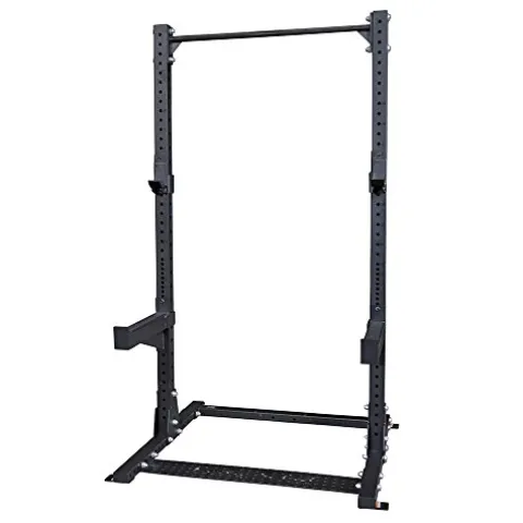 - VERSATILE WORKOUT OPTIONS: Equipped with a multi-grip pull-up bar, dip station, and a half power cage, the Body-Solid Pro Clubline Commercial Half Rack offers a complete strength-training solution. It’s perfect for various exercises including squats, presses, and deadlifts, catering to both beginners and seasoned athletes looking to enhance their home gym experience.