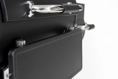 - Dual-purpose smoke diffusing charcoal trays and removable ash tray in both cooking chambers