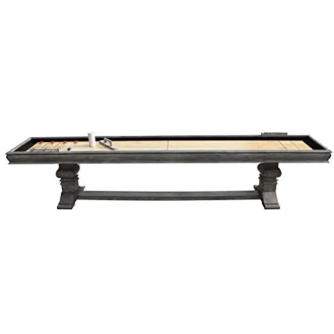 Enhance your game room with the Blue Wave NG5025 12 ft. Montecito Shuffleboard Table in Driftwood. Crafted with premium materials like butcher block, MDF, and laminate, this shuffleboard table exudes quality and durability. The multicolor design adds a stylish touch, while the generous 12″ size provides ample space for gameplay. Measuring 31.5″ in height, 26″ in width, and 146″ in length, this table offers a professional shuffleboard experience right in your own home. Elevate your entertainment space with this top-of-the-line shuffleboard table from BWP.