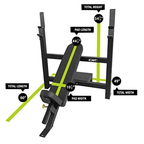 - # TRUST – Trust experience. CAP has been in pioneer in fitness with over 30 years’ experience and locations worldwide. Bench SPECS – Assembled dimensions are 61.25 x 49 x 54.75 inches. 3-inch square & 11 gauge steel frame.