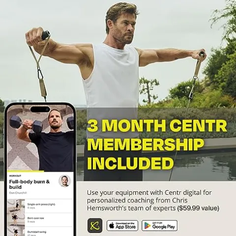 - INCLUDES 3 MONTH CENTR DIGITAL MEMBERSHIP: Train with Chris Hemsworth’s team of experts while unlocking the power of your new equipment through customized workout programs. Total well-being with limitless ways to fuel your movement, meals & mind