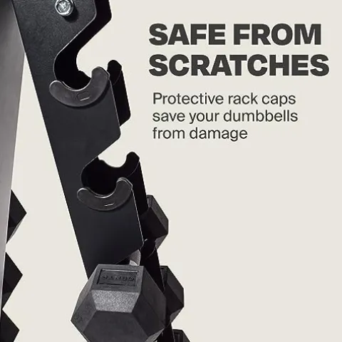 - RACK CAPS FOR PROTECTION: The plastic rack caps save your weights from unnecessary scratches