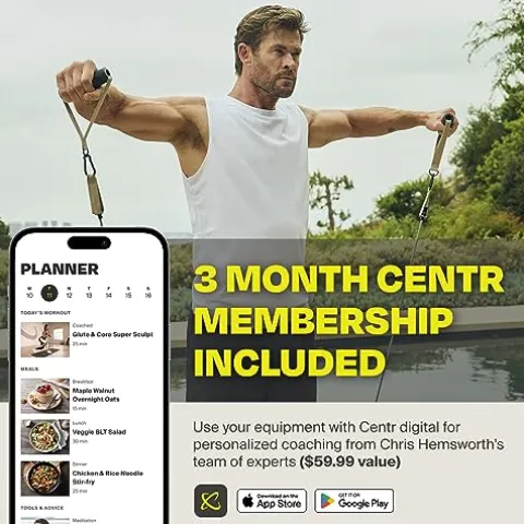 - INCLUDES 3 MONTH CENTR DIGITAL MEMBERSHIP: Train with Chris Hemsworth’s team of experts while unlocking the power of your new equipment through customized workout programs. Total well-being with limitless ways to fuel your movement, meals & mind