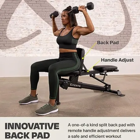 - INNOVATIVE BACK PAD ADJUSTMENT: This workout bench has a one-of-a-kind split back pad with remote handle adjustment allowing you to get into any position for a safe, effective, and efficient workout. Built by the team at Inspire Fitness, now part of Centr