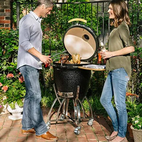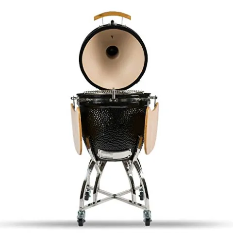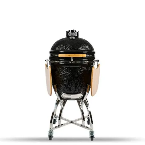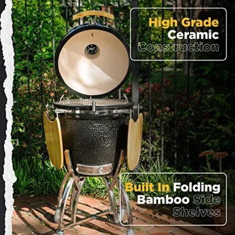 The Coyote Asado Freestanding Ceramic Cooker combines the versatility of a smoker and grill into a sleek black design, perfect for outdoor cooking enthusiasts. Crafted from high-grade ceramic, it offers exceptional heat retention, ensuring that your meals are cooked evenly and precisely for hours. With a generous 254 square inch cooking surface, you can easily grill, smoke, or sear to perfection. The dual-vent airflow system allows for meticulous control of cooking temperatures, whether you prefer low and slow smoking or high-heat searing, all while minimizing the need for constant monitoring. Featuring a standard Coyote signature smoking grate for optimal heat diffusion and built-in folding wood side shelves for convenience, this cooker is designed to elevate your outdoor culinary experience.