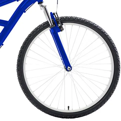 Experience the thrill of off-road adventures with the Cycle Force Dual Suspension Mountain Bike. This men’s bike features a sturdy steel dual suspension frame with a suspension fork for a smooth ride on rugged terrain. The 26-inch alloy rims and 1.95-inch mountain bike tires provide excellent traction and stability. With an 18-speed drivetrain and twist shifters, conquering hills and rough paths is a breeze. The linear pull brakes ensure reliable stopping power, while the option for custom decals allows you to personalize your ride. Get ready to hit the trails in style with this blue Cycle Force mountain bike.