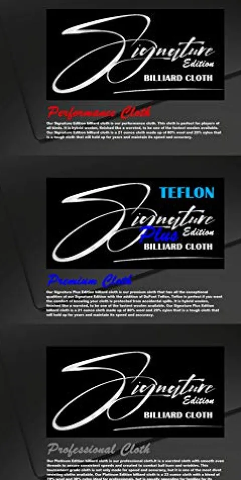 - The Platinum Edition Billiard Cloth is a 23 ounce worsted cloth made up of 70% wool and 30% nylon, packaged with a pre-cut bed and six rails. BE SURE TO LOOK THROUGH ALL THE PHOTOS TO THE LEFT FOR MORE PRODUCT INFORMATION.